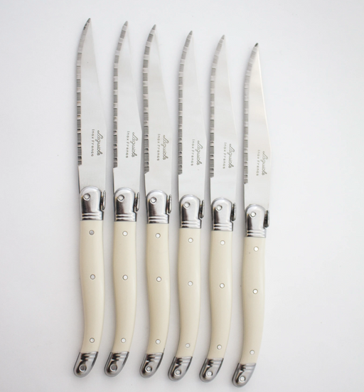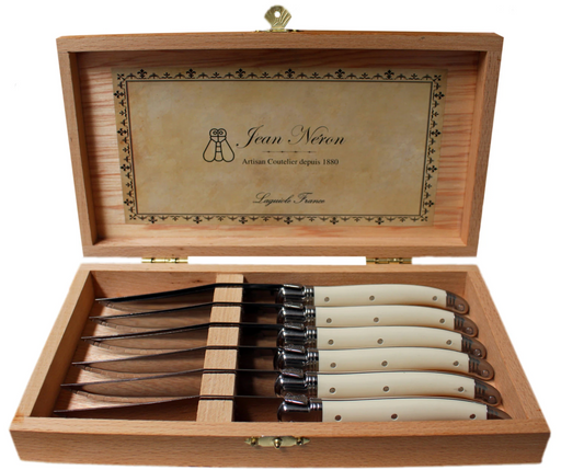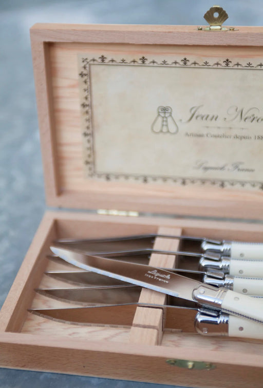 Laguiole Steak Knives Set in Wooden Box, Ivory Color