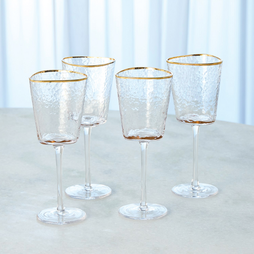 Hammered Wine Glasses - Clear with Gold Rim, Set of 4