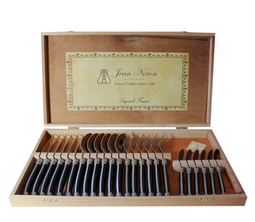 Laguiole Jean Neron 24-Piece Flatware Set in Wooden Box, Black