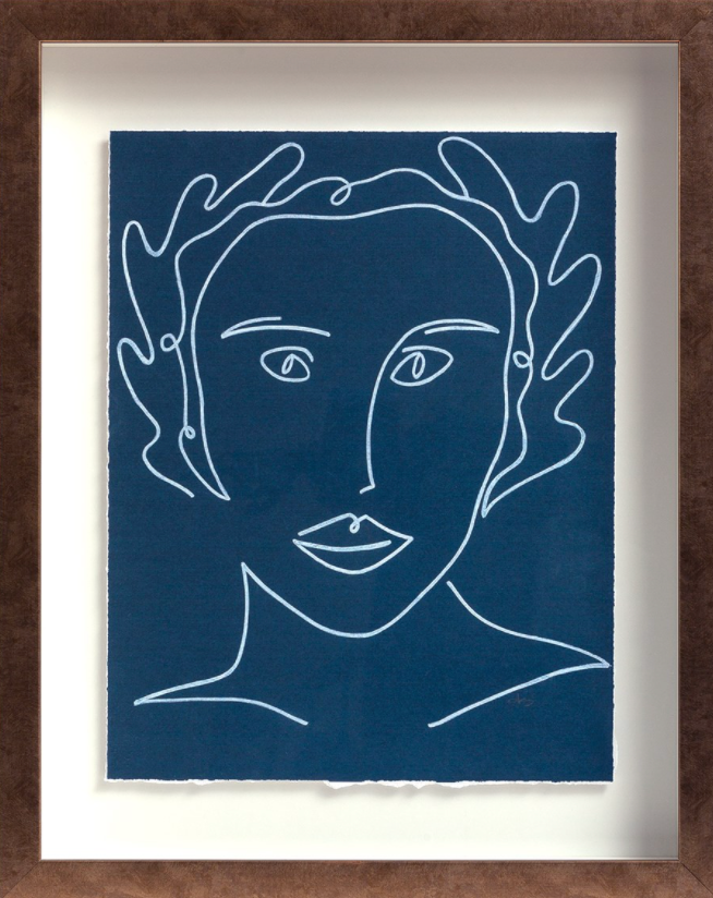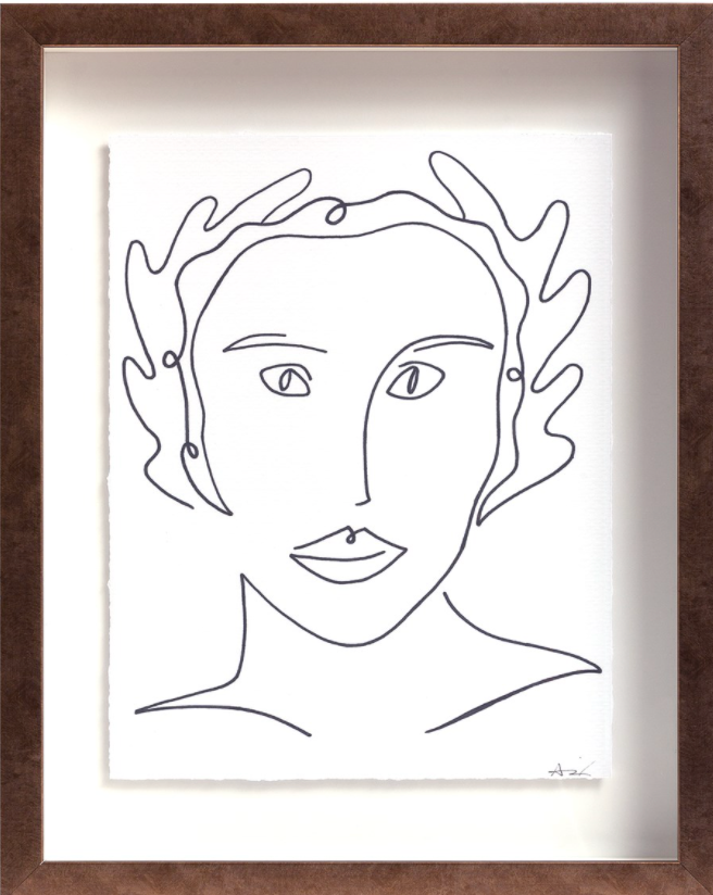 Originally created with pen on paper, each piece has a deckled edge and is floating in our brushed sun shadowbox.