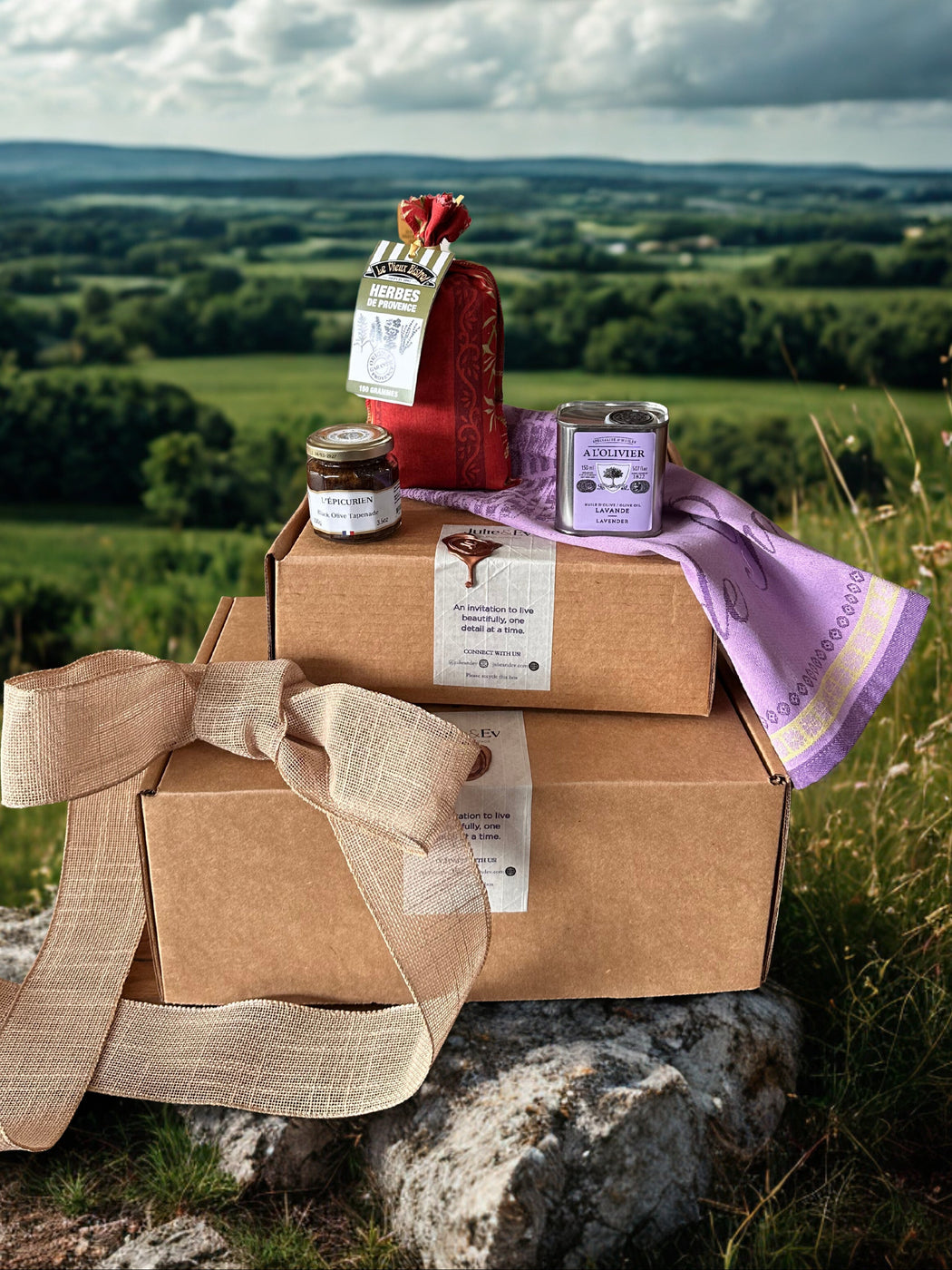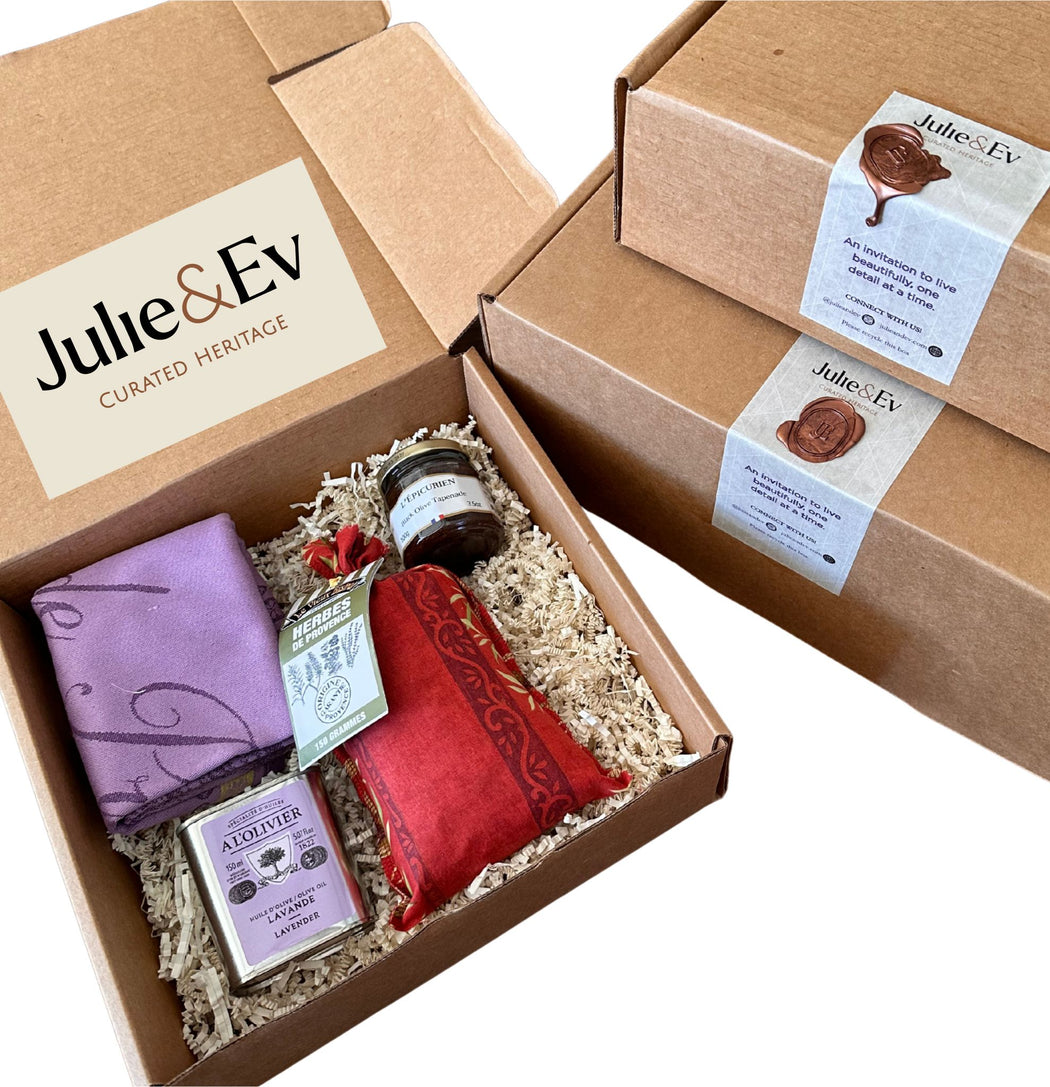 Bring the warmth of Provence into your kitchen. Enjoy aromatic Herbes de Provence, the smooth depth of A L’Olivier Landande olive oil, and the bold richness of L’Épicurien’s black olive tapenade. An elegant trio made for appetizers, fresh salads, and simple meals that taste extraordinary.