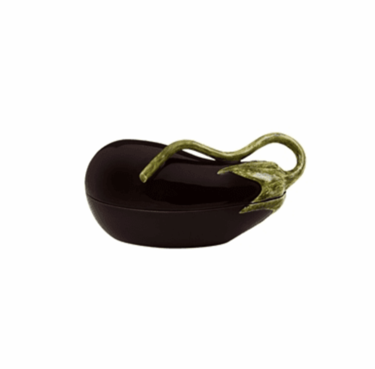 Delight your guests and family with this charming aubergine box in ceramic made in Portugal.  The delightful eggplant tureen box can be used for store your small cookware essentials or as a dish serving.