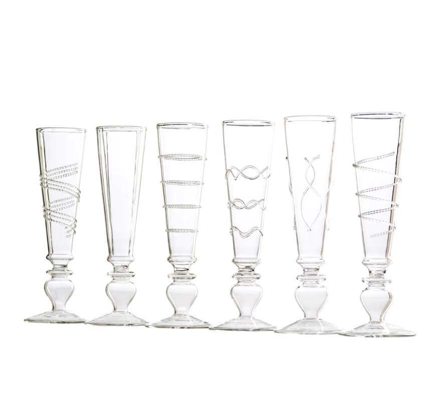 Reimagine the toast with our latest collection of champagne glasses, designed to add a playful twist to your celebrations. This exquisite set of six champagne flutes, crafted from delicate borosilicate glass, marries elegance with durability. Adorned with charming, whimsical accents, each glass is a piece of art that promises to bring a smile to your guests' faces. Ideal for the discerning celebrant seeking a blend of style and practicality, this set is a standout choice. Not only are these flutes a delightful way to serve your finest champagne, but they also come at an attractive price point, offering unmatched value for creating memorable moments. We also have these beautiful Champagne Flutes with Gold Accents.