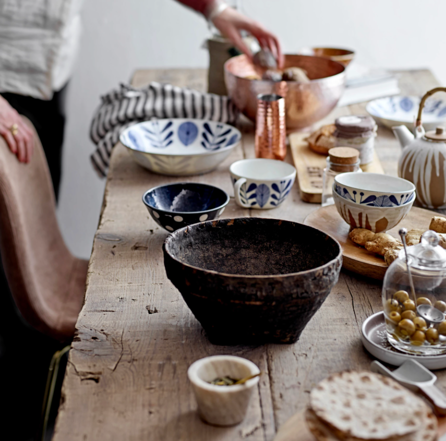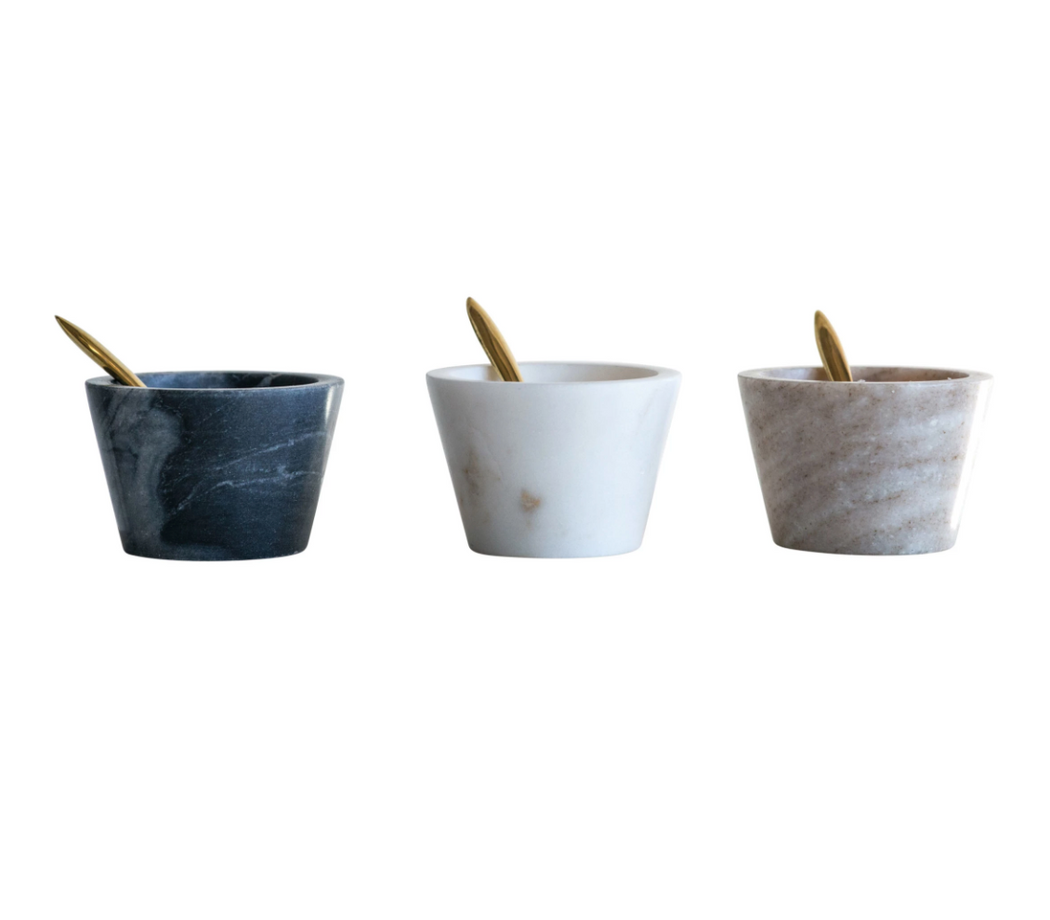 Marble Bowl with Brass Spoon, Set of 3