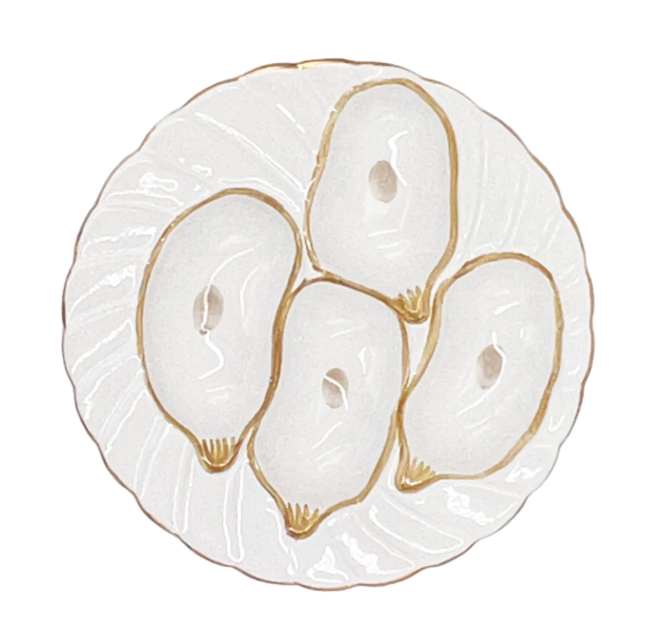 Oyster Plate, White with Gold Detailing