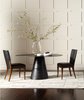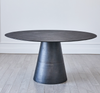 The Apex Dining Table is constructed from durable aluminum and features a sophisticated black powder-coated finish.