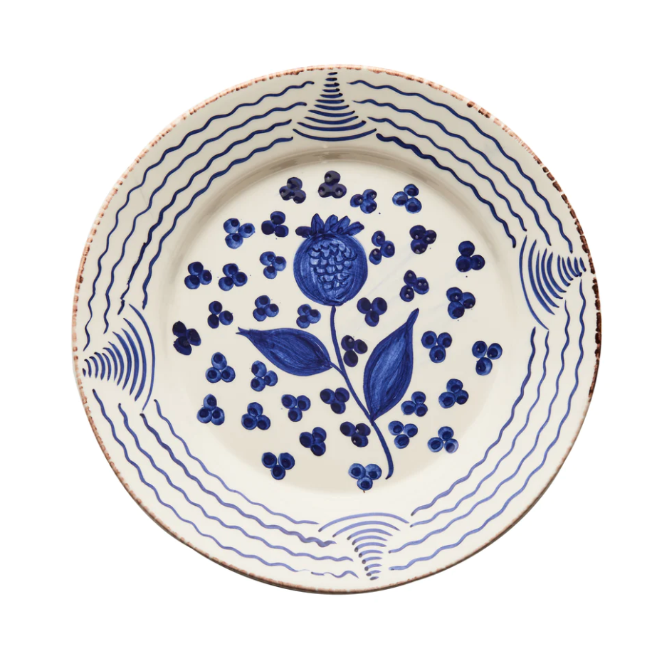 Casa Nuno Blue and White Dinner Plate, Pomegranate/Waves, Set of 2