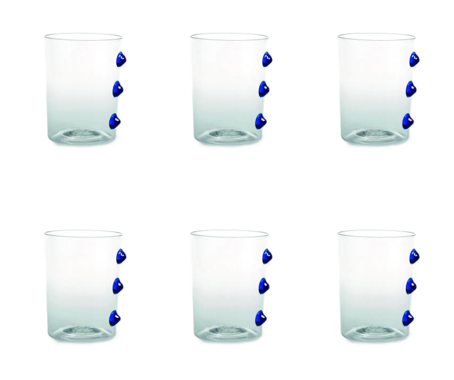 Handblown Italian Tumbler Glass with Blue Dots (Set of 6)