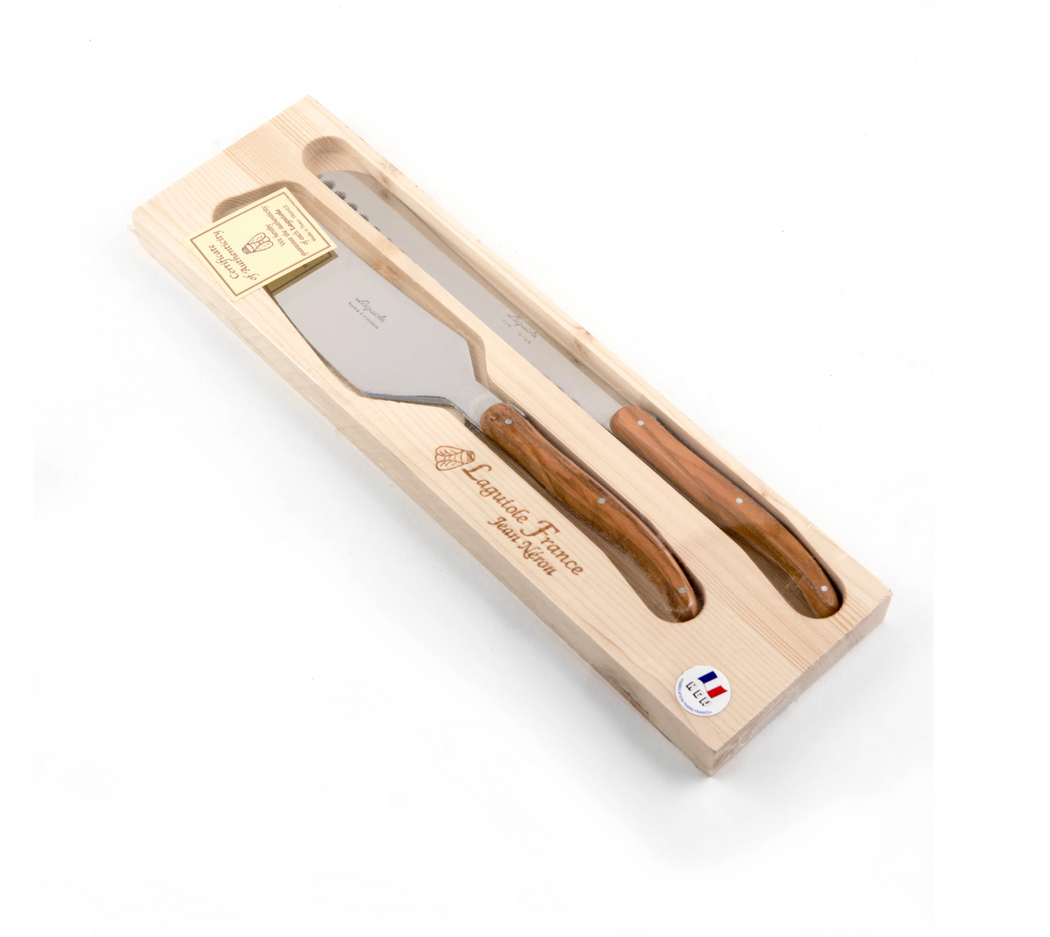 Laguiole Cake & Bread Set in Wooden Tray - Olivewood Handles