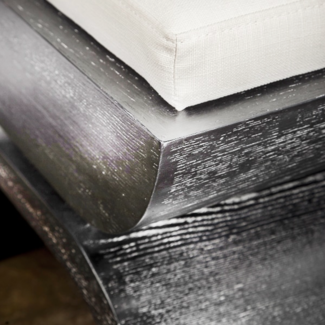 This lavish, Asian-inspired stool delights with its graceful curves and sculptural form. Choose from black cerused or glossy black. The black cerused finish accentuates natural oak grain texture, while the glossy black lacquer finish evokes modern appeal.