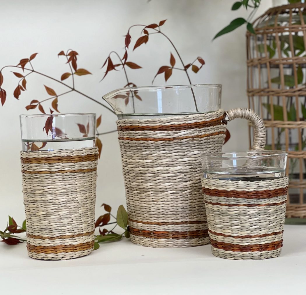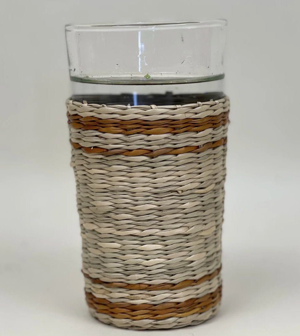 These Provencal favorite highball glasses are wrapped in a removable seagrass casing, making them the perfect size for cocktails, lemonade or other refreshing beverages in the summer.