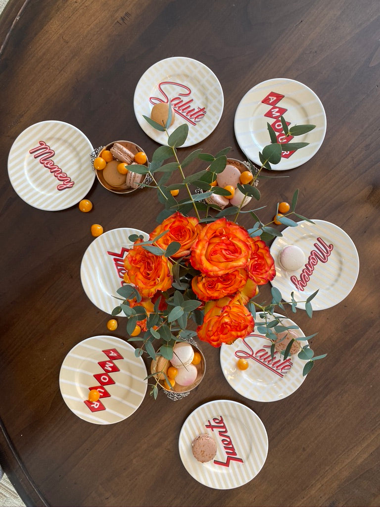Make a wish or dream while serving bread or dessert in one of these Italian words dessert plates. Modern meets classic in these Italian bistro plates that can also be used as bread plates. They can also be a great perfect present for that friend who has it all.