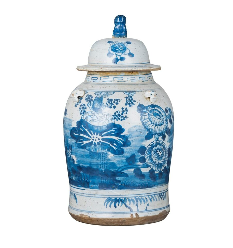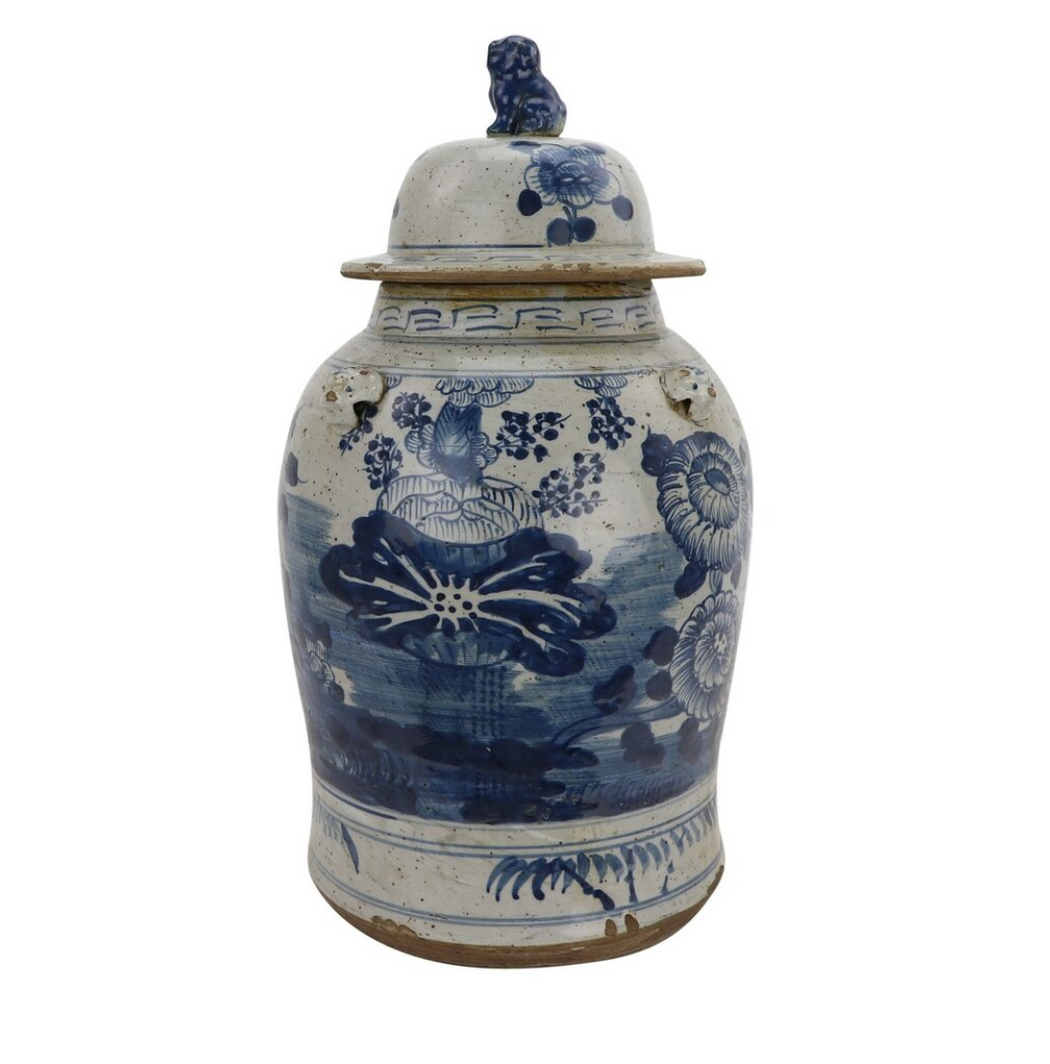 Vintage Temple Jar With Four Season Plants Motif
