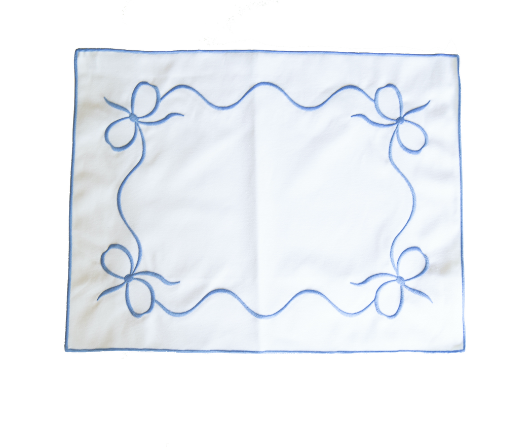 Embroidered Bow Organic Cotton Placemat and Napkin Set