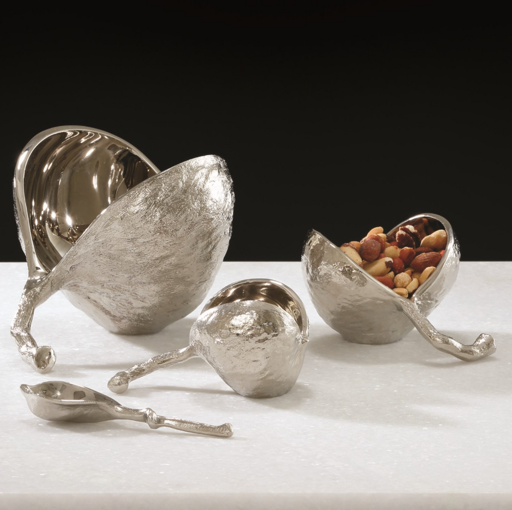 We are absolutely nuts for our Chestnut Bowl! The nickel finished solid cast brass piece is a fun way to serve party snacks. The chestnut shape is charming and amusing.