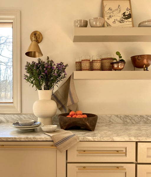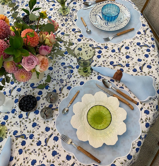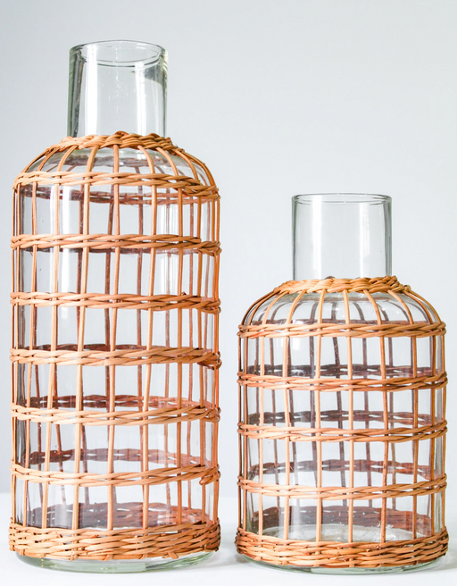 Julie and Ev carries quality dinnerware that allows you to express yourself and style. If you like color, consider set the table with one of our colorful dinner plates or if you prefer to keep things neutral, our white Geranium plates will add texture as well. Contrast the colorful modern plates with a white tablecloth and napkins. To add a touch of casualness to your table setting add one of our rattan wrapped glasses and carafe. Our rattan cage drinking glasses can provide a coastal feel to any table decor.