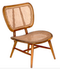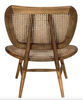 The Marcie Lounge Chair rests on a gently reclined teak frame with a warm, natural finish. Its curved seat and back are handwoven in cane, bringing an organic softness and delicate texture that enhance its relaxed elegance.