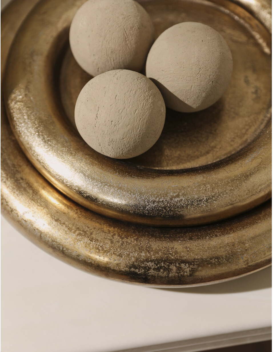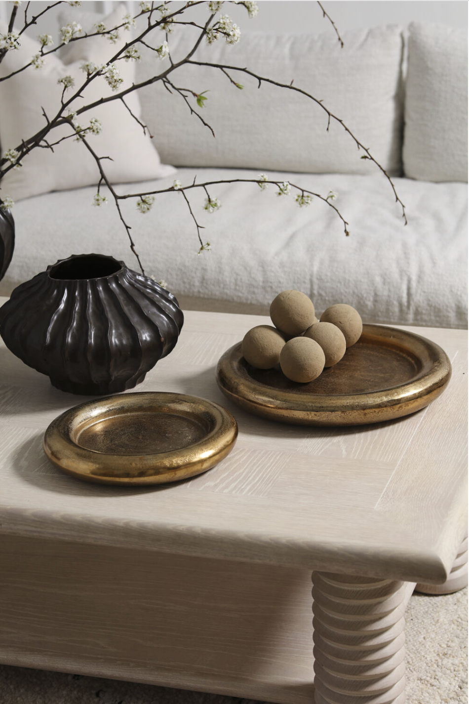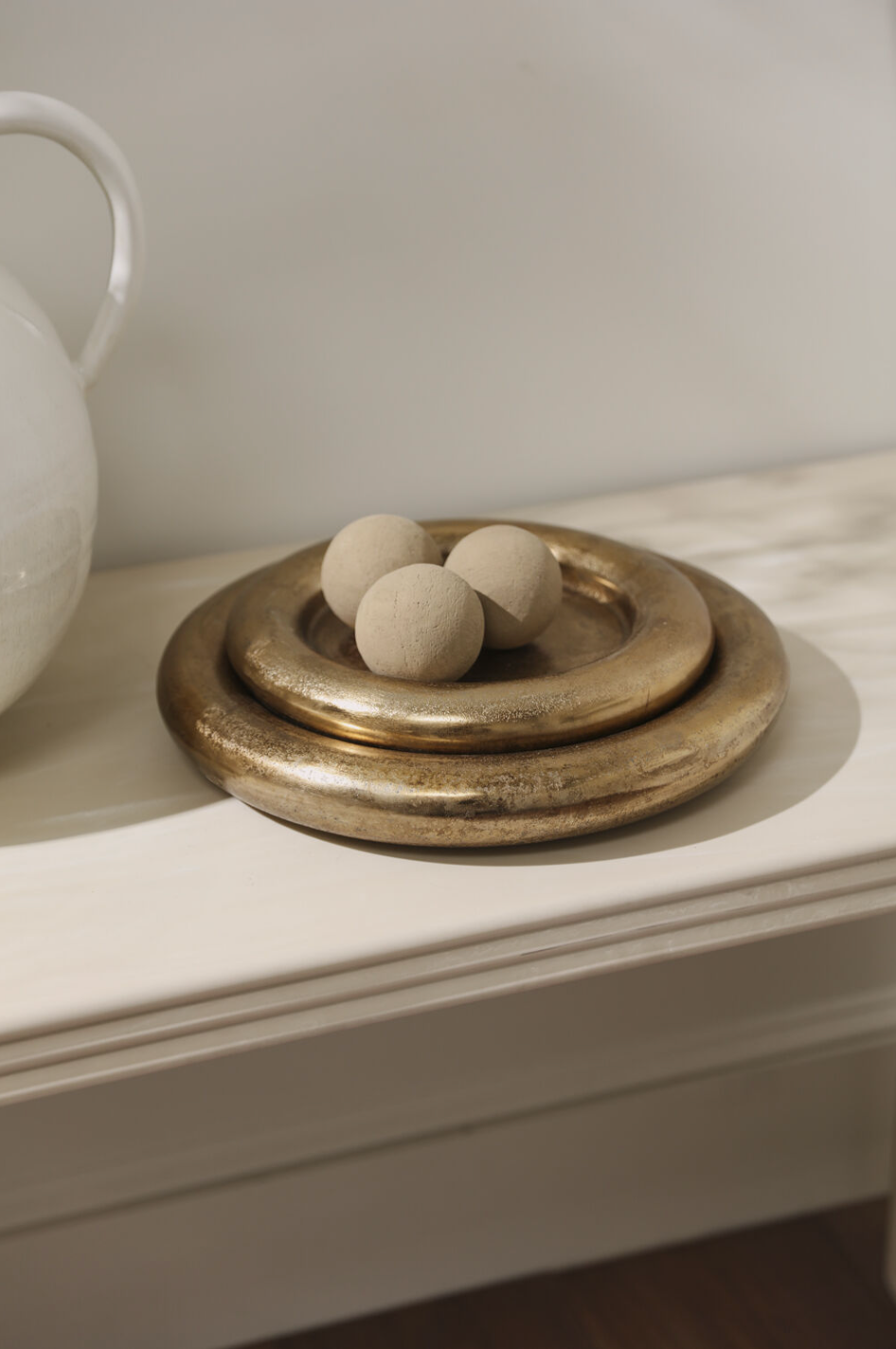Create a luxurious moment on a console or coffee table with the Stowe Tray. Finished in a warm, softly luminous gold with gently sloped edges, this substantial piece is perfect for styling candles, corralling everyday objects, or holding plants while protecting surfaces. Pair both Stowe sizes—stacked or styled side by side—for a layered, cohesive look that instantly elevates the room.