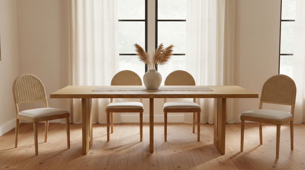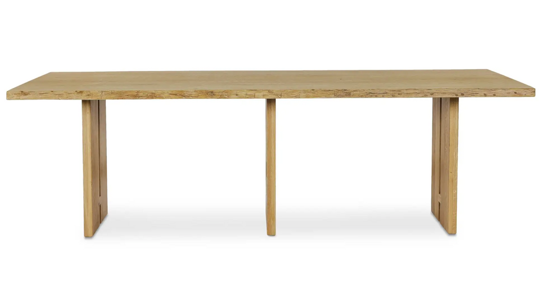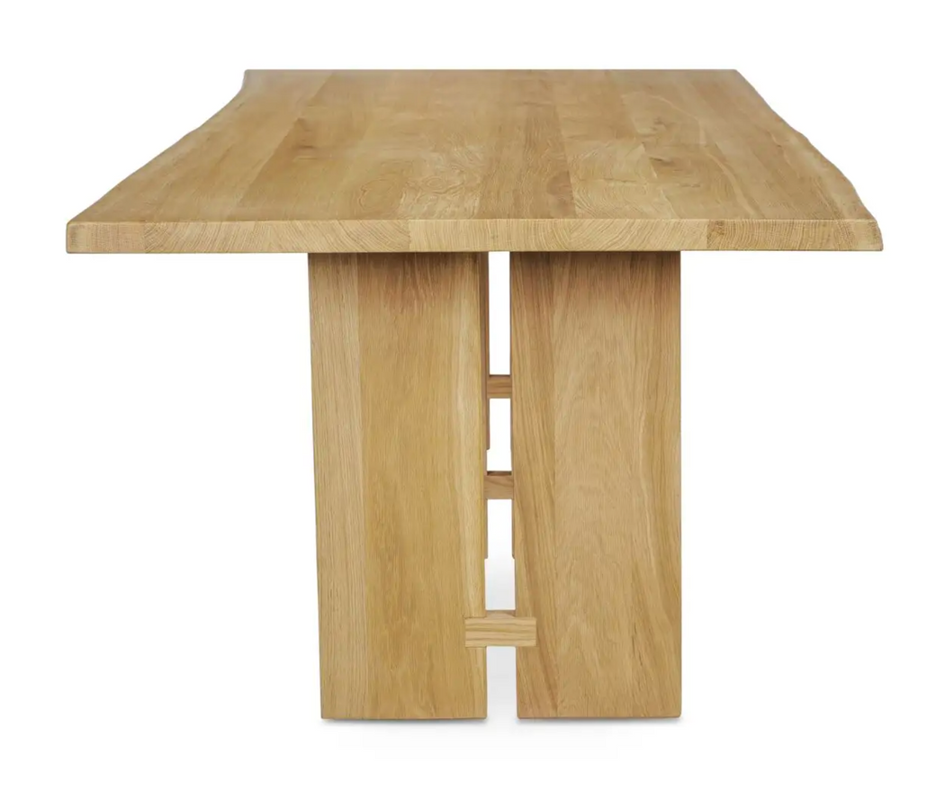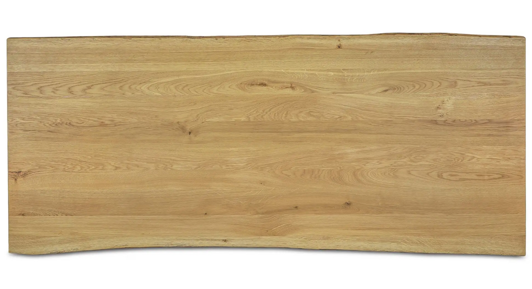 Edges that don’t follow the expected. Tess reimagines tradition with sculptural lines and distinctive materials. Crafted from solid oak with a live-edge top, it highlights the natural grain and one-of-a-kind character of the wood. Three panel legs anchor the form, each detailed with a subtle protrusion that introduces rhythm and dimension.